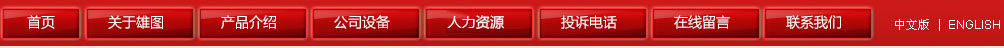 網(wǎng)站首頁 | 關于雄圖 | 產(chǎn)品介紹 | 公司設備 | 新聞中心 | 投訴電話 | 在線留言 | 聯(lián)系我們 | ENGLISH 【后臺管理】